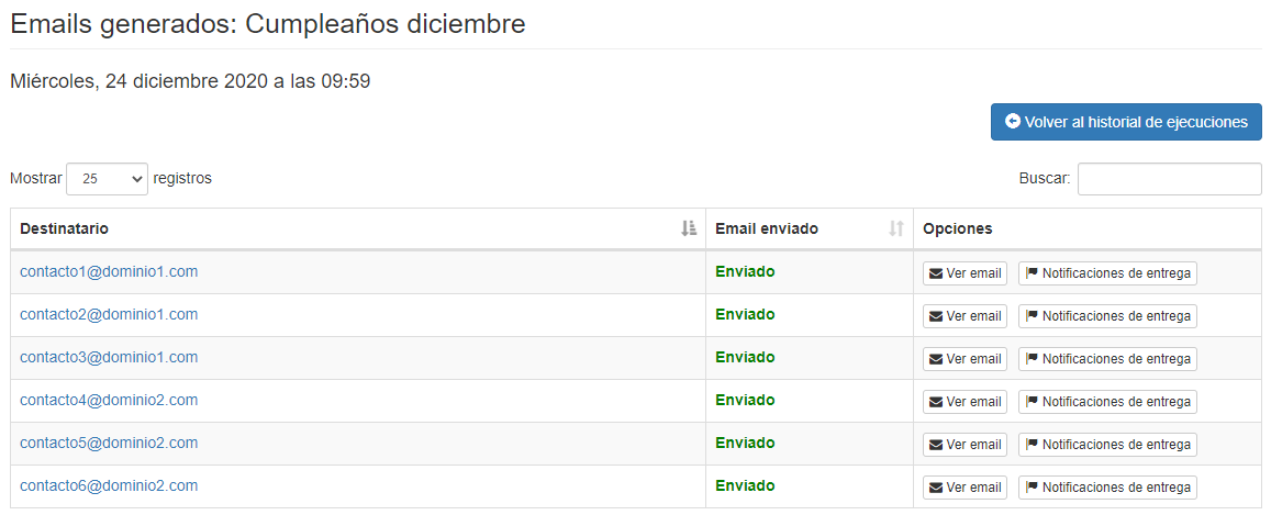 - Los contactos a los que se les envió en esa ejecución y el Email enviado