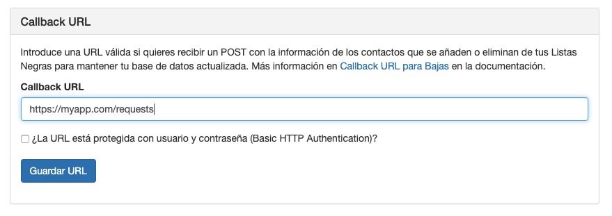 Puedes recibir, en la URL que nos indiques, una petición POST cada vez que se añada o elimine un contacto de cualquiera de las Listas Negras de la plataforma. De esta manera, podrás mantener actualizada tu base de datos.